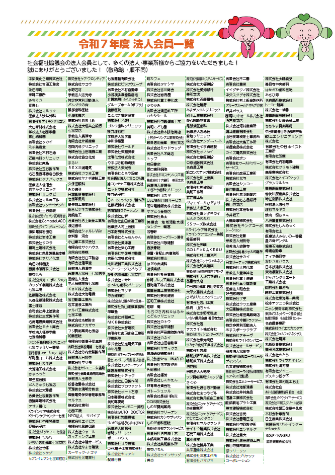 令和7年度あま市社会福祉協議会会員募集につきましては、市民の皆様や法人事業所各位から温かいご理解と、多大なご協力を賜ることができました。皆様には心より厚くお礼申し上げます。